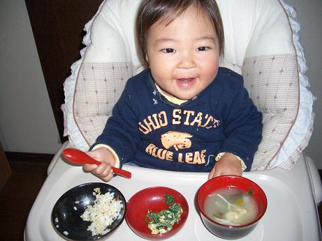 赤いスプーンがお気に入りみたいで、食事の後もしばらく離しません。
