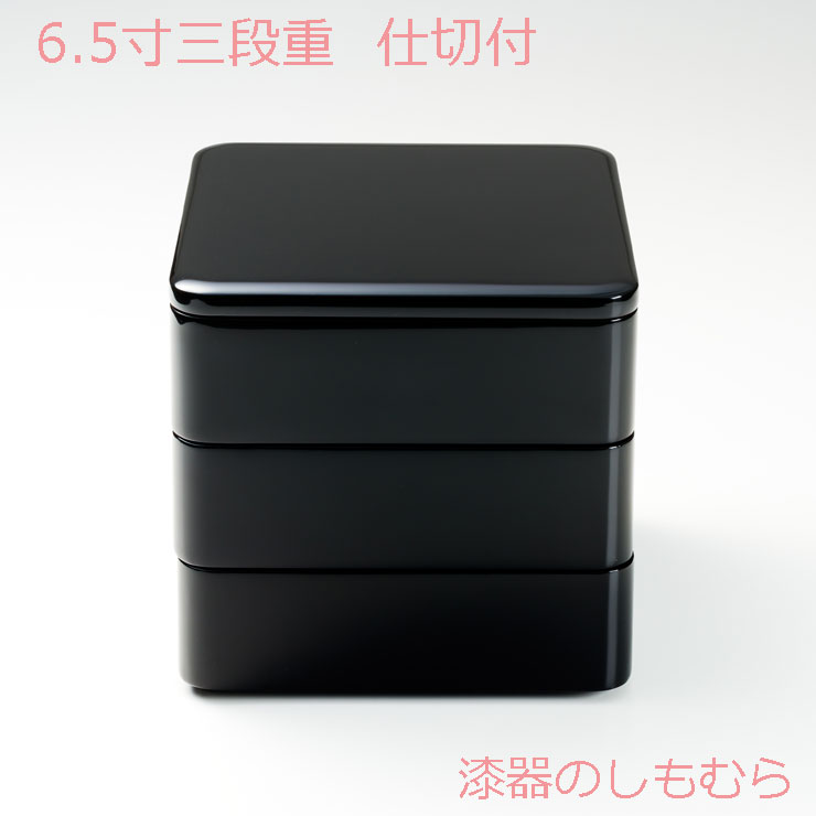 お求めはこちらのページでどうぞ!⇒【越前漆器】木製6.5寸三段重 漆塗黒内朱 仕切り付