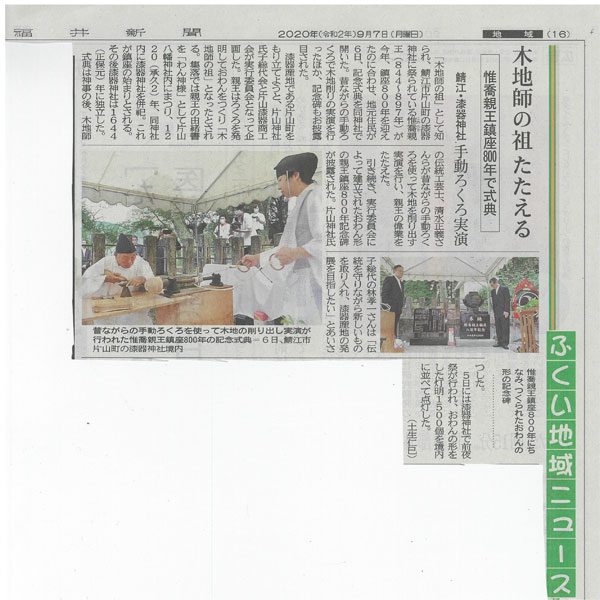 1.鯖江市片山町 漆器神社で木地師の祖たたえる